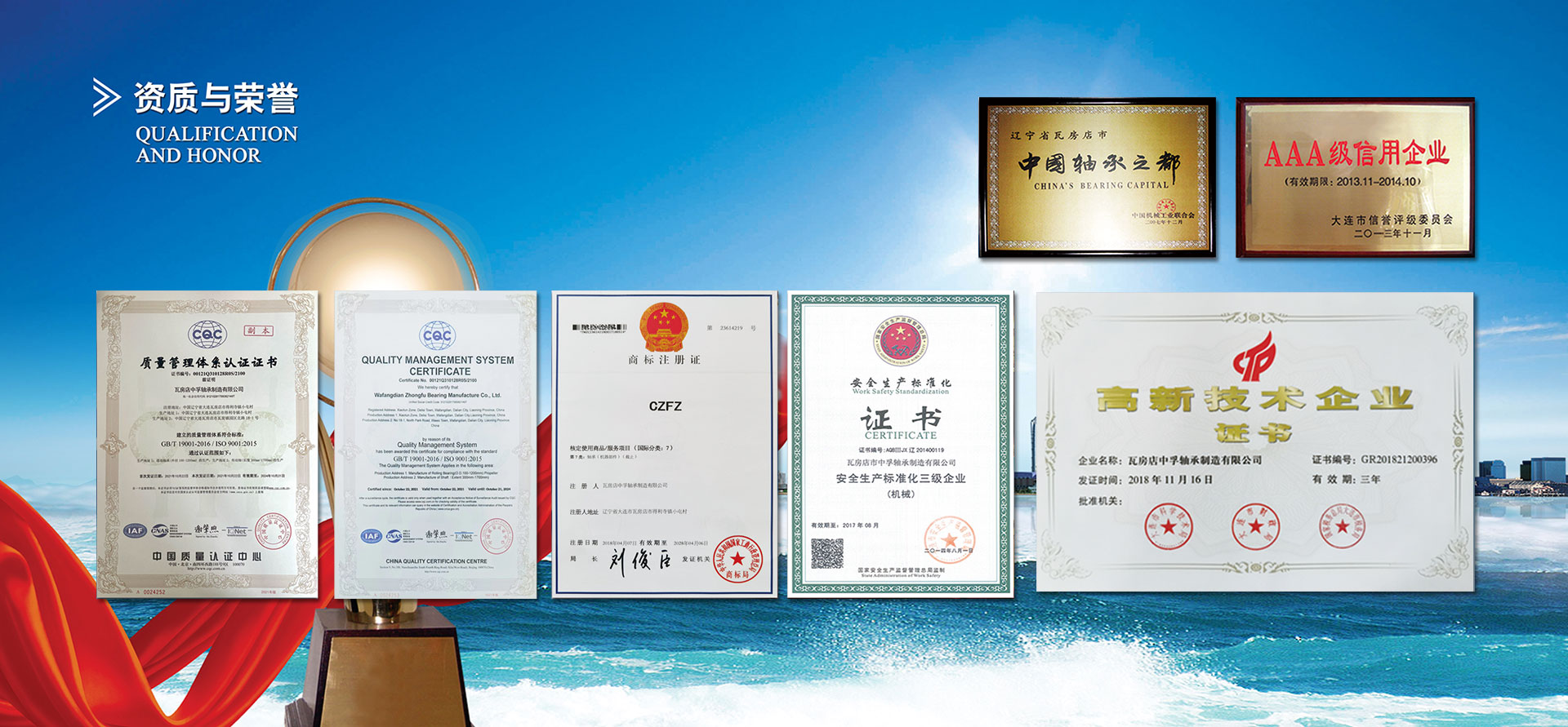 瓦房店中孚軸承制造有限公司專業(yè)生產(chǎn)礦用汽車軸承和配件,擁有獨(dú)立礦用汽車軸承設(shè)計(jì)和產(chǎn)品研制部門,具備開發(fā)礦用汽車軸承的能力,保證軸承的使用壽命和高穩(wěn)定性,并建立了完整的質(zhì)量體系,已通過ISO9001:2015質(zhì)量管理體系認(rèn)證。